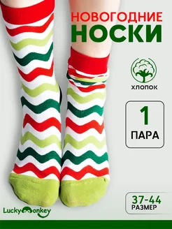 Носки Новогодние высокие хлопковые с Дед Морозом и оленем