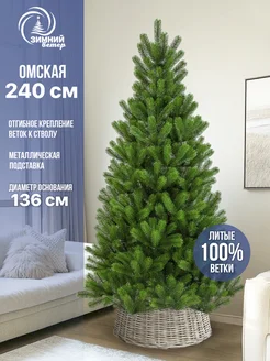 Елка искусственная новогодняя Омская, литая, зеленая, 240 см