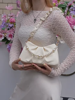 Сумка вечерняя клатч с жемчужным ремешком свадебная