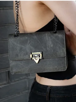 Серая сумка клатч кросс-боди через плечо c цепью