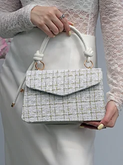 Твидовая белая сумка клатч через плечо old money