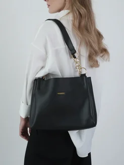 Черная сумка тоут А4 кожаная на плечо
