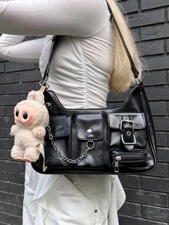 Сумка с ЛАБУБУ и цепью багет y2k через плечо