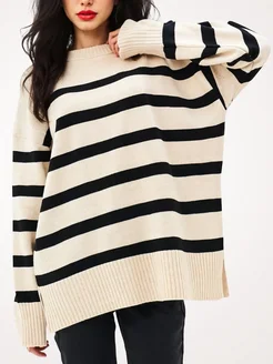 Свитер в полоску вязаный теплый