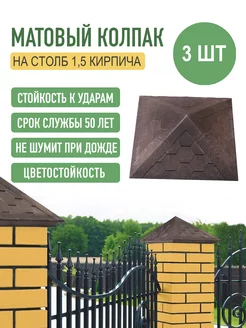 Колпак на столб забора на 1,5 кирпича, 3 шт Эко, коричневый