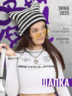 Шапка с ушками женская осенняя весенняя бини аниме Y2K
