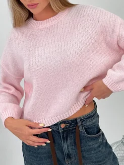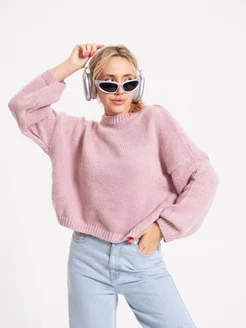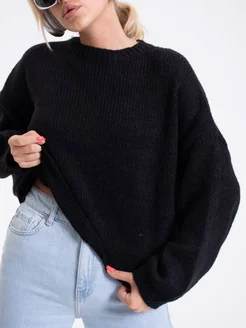 Свитер оверсайз вязаный теплый укороченный
