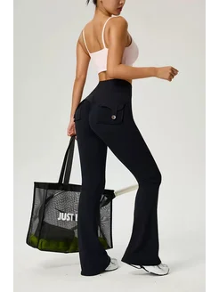 Лосины спортивные клеш для фитнеса push up с карманами