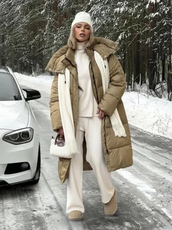Пуховик зимний длинный с капюшоном