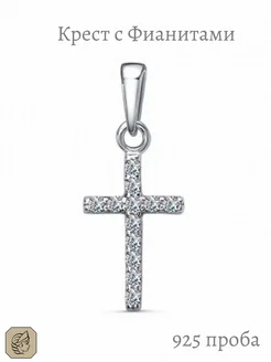 Подвеска серебряный крестик с Фианитами с подвижным ушком