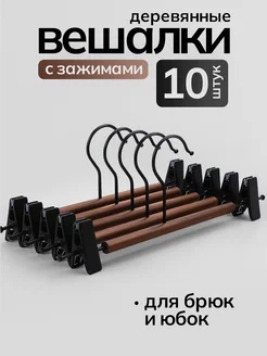 Деревянные вешалки для брюк и юбок с зажимами 10 шт