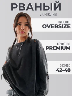 лонгслив хлопок базовый оверсайз трикотажный с дырками