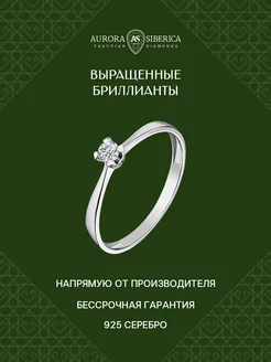 Кольцо из серебра с выращенным бриллиантом