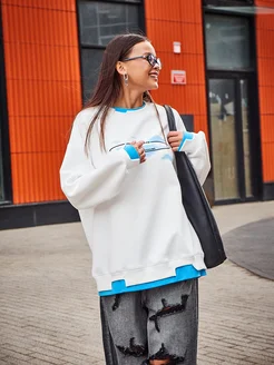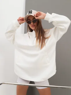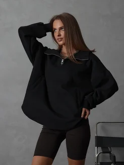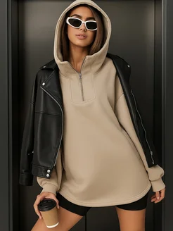 Худи оверсайз с капюшоном свитшот теплое полузамок