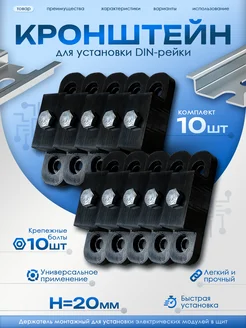 Кронштейн для установки DIN-рейки, Н=20 мм, 10 штук