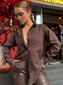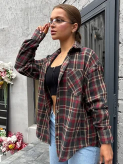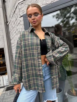 Рубашка женская в клетку оверсайз удлиненная большие размеры