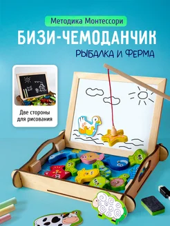 Детская магнитная доска чемоданчик для рисования "Рыбалка"