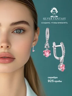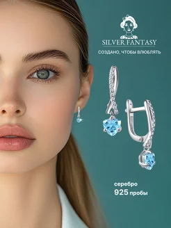 Ювелирные пусеты клевер серебряные 925 с камнем фианит