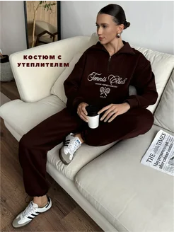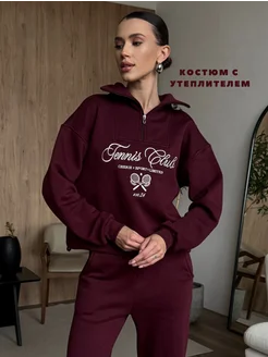 Спортивный костюм полузамок с начесом оверсайз с принтом