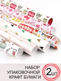 Набор упаковочной бумаги "Сердца"