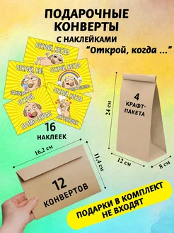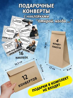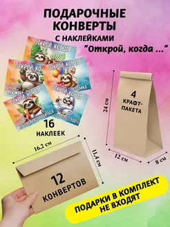 Конверты крафтовые с наклейками набор "Открой, когда"