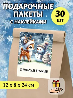 Подарочные пакеты с наклейками на новый год 30 шт