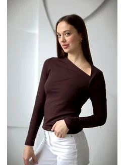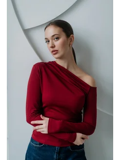 Лонгслив облегающий вечерний с асимметричным вырезом