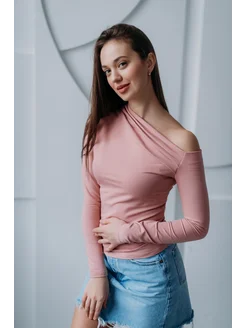 Лонгслив облегающий вечерний с открытым плечом