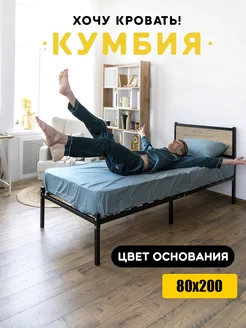 Кровать односпальная 80х200 Кумбия с деревянным изголовьем