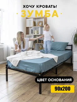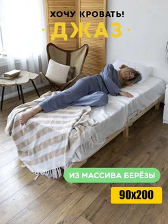 Кровать односпальная 90х200 Кумбия с деревянным изголовьем