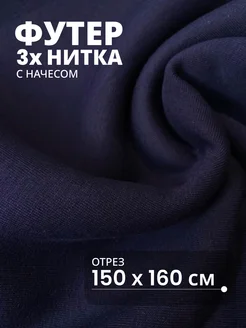 Футер 3 нитка с начесом 100% пэ темно-синий длина 150 см