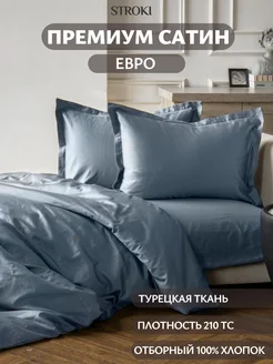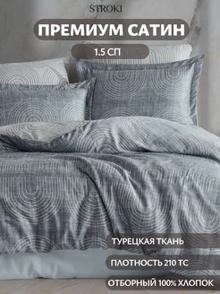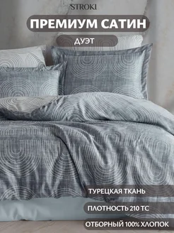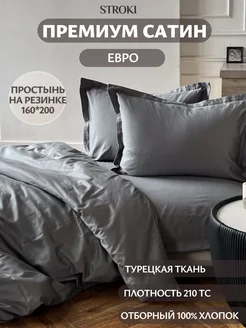 Постельное белье ODA grey евро 160х200 на резинке, сатин