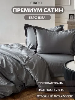 Однотонное постельное белье Oda grey евро Ikea, сатин люкс