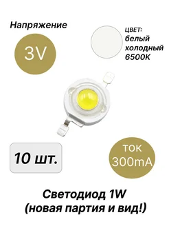 Светодиод мощный 1Вт 3В белый холодный 6500К