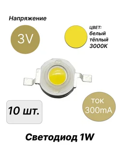 Светодиод мощный 1Вт 3В белый тёплый 3000К