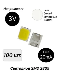 Светодиод 3V SMD 2835 белый холодный 6500К