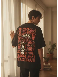 Футболка оверсайз черная с принтом Adidas y2k