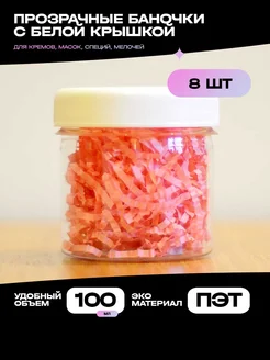 Банка ПЭТ 100 мл прозрачная с белой крышкой 8 шт