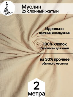 Муслин ткань для шитья 2метра Бежевый-Темный
