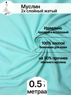 Муслин ткань для шитья 0.5метра Бирюзовый