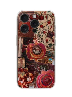 Чехол на iPhone 16 Pro Max принт Гранаты и ковры красный