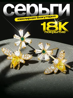 Серьги гвоздики «Пчёлка с цветком»