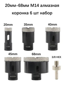 Набор алмазных коронок 5шт 20мм-68мм