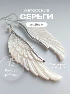 Серьги с белым перламутром крупные Крылья свадебные, бохо