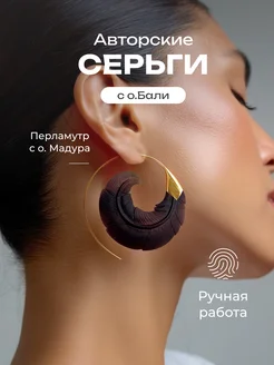 Серьги с редким перламутром с о.Бали коричневые, бохо