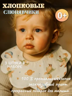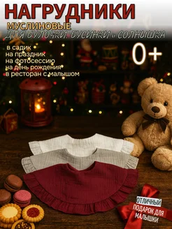 Набор нарядных муслиновых нагрудников для малышки 3 шт