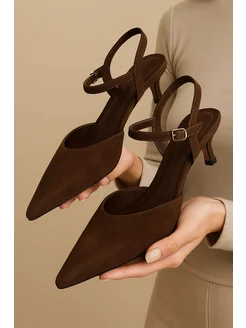 Туфли женские замшевые на шпильке слингбэки