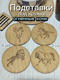 Подставки под кружку "Огненные кони" деревянные 9 см 4 шт