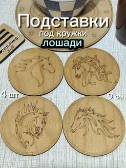 Подставки под кружку "Лошади", деревянные, 9 см, 4 шт