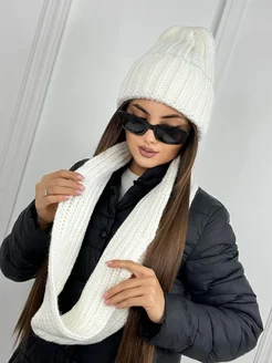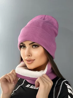 Шапка женская зимняя осенняя вязаная бини с отворотом
